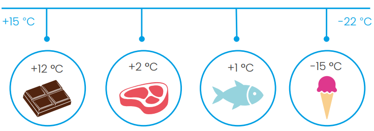 Fisch, der ohne Eis bei genau +1 °C gehalten wird, bleibt länger frisch und lässt sich leichter filetieren. In einem genau auf +2 °C eingestellten Adande gelagertes Frischfleisch trocknet weniger aus und gibt kaum Wasser ab. Speiseeis und Sorbets, die bei -15 °C aufbewahrt werden, bleiben auf der idealen Serviertemperatur, ohne dass sich Eiskristalle bilden. Pommes frites spritzen weniger beim Frittieren, nehmen weniger Öl auf und werden gleichmäßig gar, wenn sie in einem Adande gelagert wurden. Meeresfrüchte, Nudeln, Gebäck, Salat und Beilagen gehören zu den vielen anderen Lebensmitteln, die sich in einer so stabilen und genau kontrollierten Umgebung besser halten.